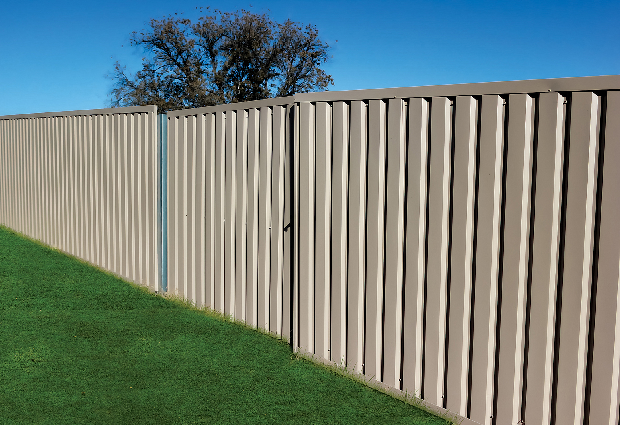 colored chain-link fence with vinyl privacy panels installed on the exterior, this is just one example of many